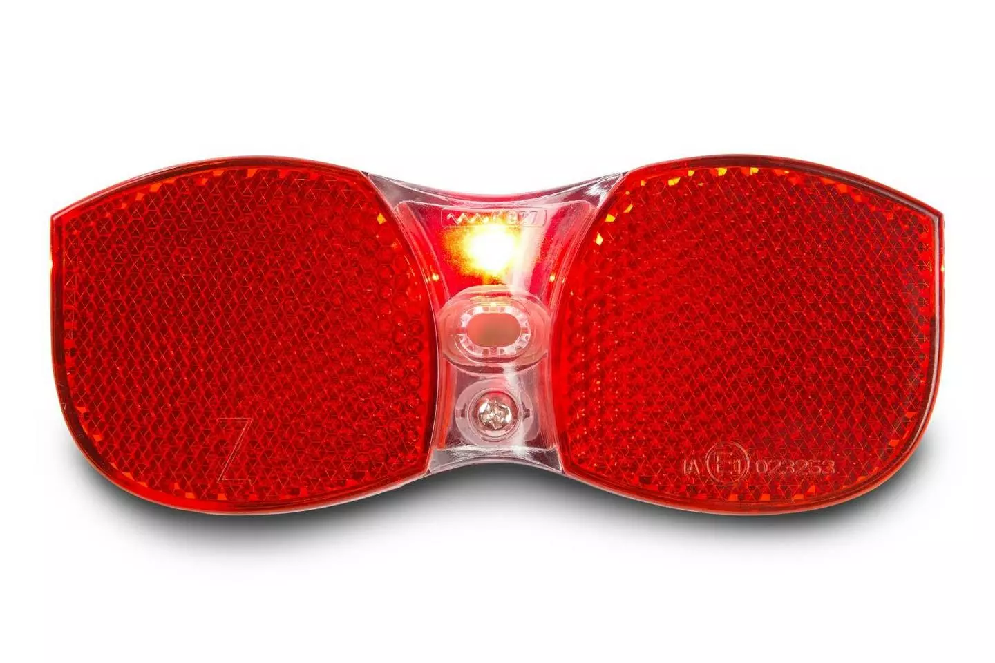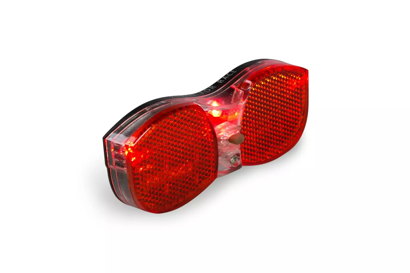 Beste Beleuchtung, auch hinten! Spritzwassergeschütztes Rücklicht mit StVZO Zulassung, das für Gepäckträger geeignet ist. 80 mm Abstand und 3 LEDs. Batterien sind inklusive.