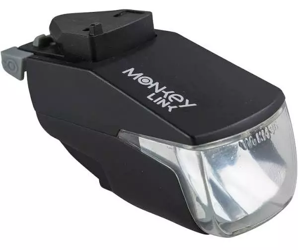 Das ML-Light Front 50 Lux Recharge ist eine Frontleuchte für Fahrräder aus der Recharge-Serie von Monkey Link, die unabhängig vom Akku des E-Bikes mit Strom versorgt wird. Sie ist mit einem per USB aufladbaren Lithium-Ionen-Akku mit einer Kapazität von 500 mAh ausgestattet und erreicht eine Leistung von 50 Lux oder 130 Lumen. Dieses leistungsstarke Frontlicht verfügt über zwei Einstellmöglichkeiten: Bei wenig beleuchteter Strecke kann der High-Modus zum Einsatz kommen, bei besser beleuchteten Wegen kann die Leuchte im Low-Modus betrieben werden. Sie kommt auf eine Leuchtdauer von bis zu 6 Stunden. Dabei ist sie innerhalb von 1,5 Stunden aufgeladen und verfügt über eine praktische Anzeige des Akkustands. Diese Leuchte wird mit einem Befestigungsadapter des Monkeylink-Systems am Fahrrad angebracht. Dieser ist nicht im Lieferumfang enthalten.