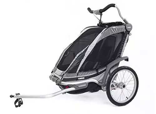 Der durch Dachboxen weither bekannte Hersteller Thule hat mittlerweile einige Fahrradanhänger in seinem Programm. Darunter auch den Thule Chinook 1. Er ist nicht nur zusammenklappbar, sondern hat auch ein wegklappbares oder abnehmbares Vorderrad. Das hat den Vorteil, dass man den Kinderfahrradanhänger ohne großen Aufwand in einen Jogger oder Kinderbuggy umwandeln kann. Soll der Thule Fahrradanhänger ein Jogger werden, dann braucht man einfach nur die Deichsel einklappen und das Vorderrad dafür ausklappen. Bei anderen Herstellern aus unseren Fahrradanhänger Test geht das nicht so einfach und muss dafür auch immer das Vorderrad extra dabei haben.
