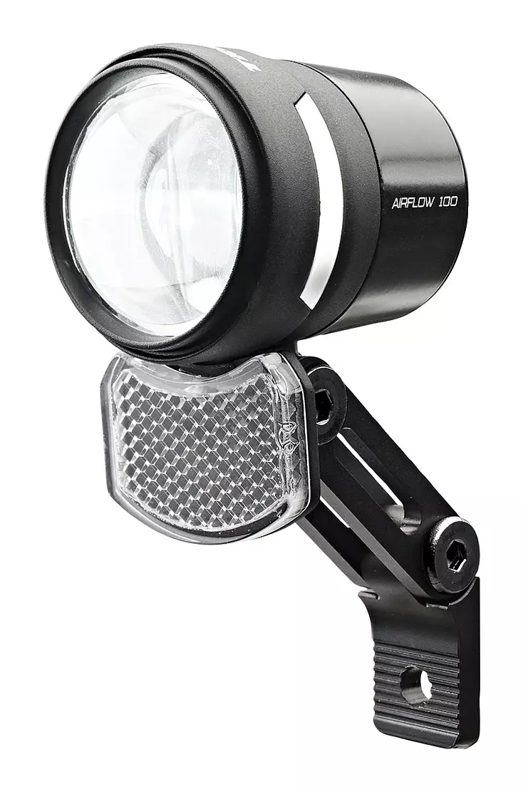 TRELOCK setzt bei Frontleuchten auf höhere Leistung bei schlankem, harmonischem Design: Dank Doppel-Linsen-Technologie erzielt die Frontleuchte Airflow 100, mit einem kompakten 45mm-Gehäuse, satte 100 Lux Beleuchtungsstärke. Zwei Fenster im Gehäuse erhöhen die seitliche Sichtbarkeit, ein kleiner, abnehmbarer Reflektor sorgt für eine schmalere Silhouette. Mit dem Doppelachsen- Halter ZL 990 lässt sich die AIRFLOW flexibel ausrichten. Die hochwertige Materialauswahl in Kombination mit dem reduzierten Design der AIRFLOW ist besonders auf den anspruchsvollen Radfahrer abgestimmt.