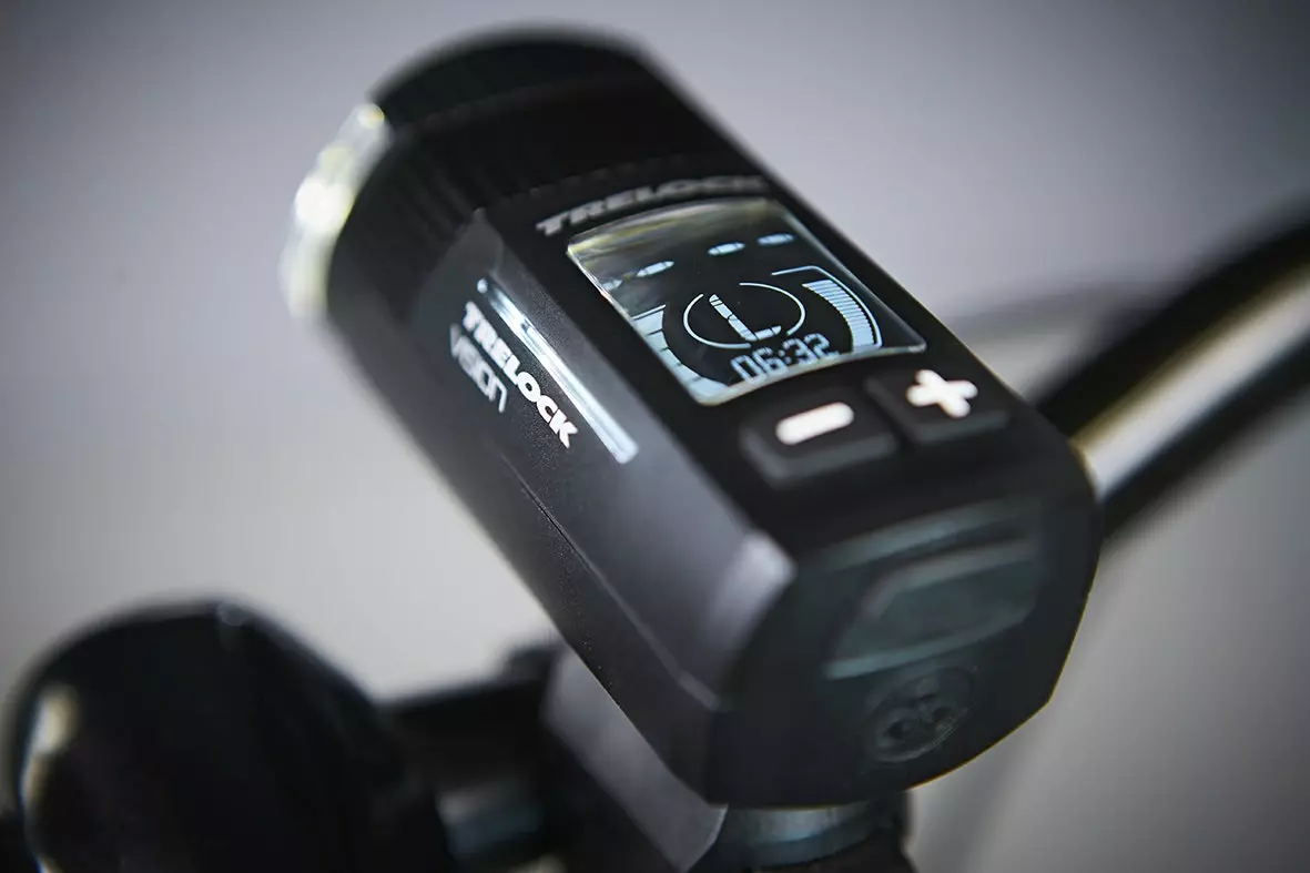 Mit der LS 760 I-GO® VISION präsentiert TRELOCK das neue Spitzenmodell seiner erfolgreichen Akkufrontleuchten-Serie. Die LS 760 I-GO® VISION verfügt über ein LCD-Display, welches nicht nur minutengenau die verbleibende Leuchtdauer anzeigt, sondern auch die Sicherheit des Radfahrers steigert: Dank eines eingebauten Sensors erhält der Nutzer auf dem Display ein Feedback zur horizontalen Ausrichtung der LS 760 I-GO® VISION. Diese innovative Level-Funktion sorgt für ein Plus an Sicherheit für den Radfahrer, weil ein Blenden des entgegenkommenden Verkehrsteilnehmers vermieden wird. Zusätzliche Features wie die Anzeige der Uhrzeit runden die vielfältigen Funktionen des LCD- Displays ab. Die Beleuchtungsstärke von bis zu 100 Lux kann in 5 Stufen geregelt werden. Eine optimale Ausleuchtung für jede denkbare Umgebung ist somit jederzeit gewährleistet. Für eine zusätzliche Sicherheit des Nutzers sorgt die seitliche Beleuchtung. Über die USB-Schnittstelle wird der hochwertige Lithium-Ionen-Akku bequem geladen. Die Powerbank-Funktion der LS 760 I-GO® VISION ermöglicht z.B. Smartphones unterwegs per Scheinwerferakku aufzuladen. Je nach ausgewählter Beleuchtungsstufe sorgt der Akku für eine Leuchtdauer von bis zu 9 Stunden. Im Set ist das bewährte Rücklicht LS 740 REEGO enthalten.